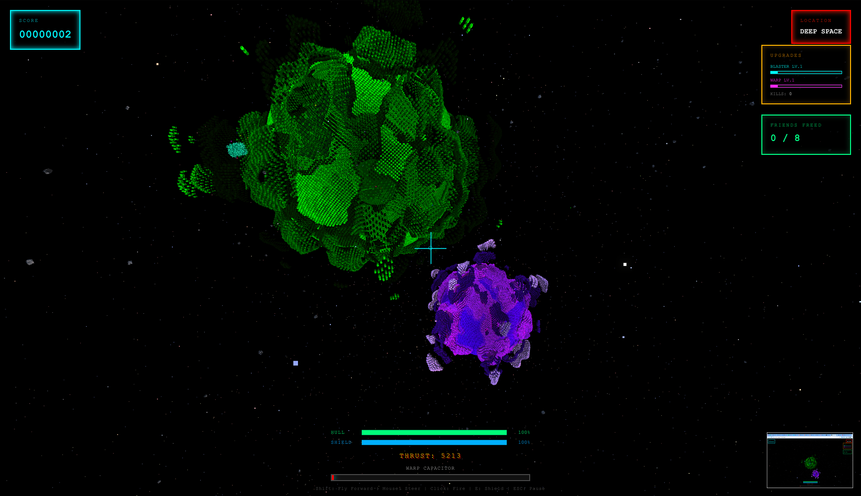 3D space combat / voxel destruction / synthwave audio / procedurally generated galaxy / browser-based - no download required.